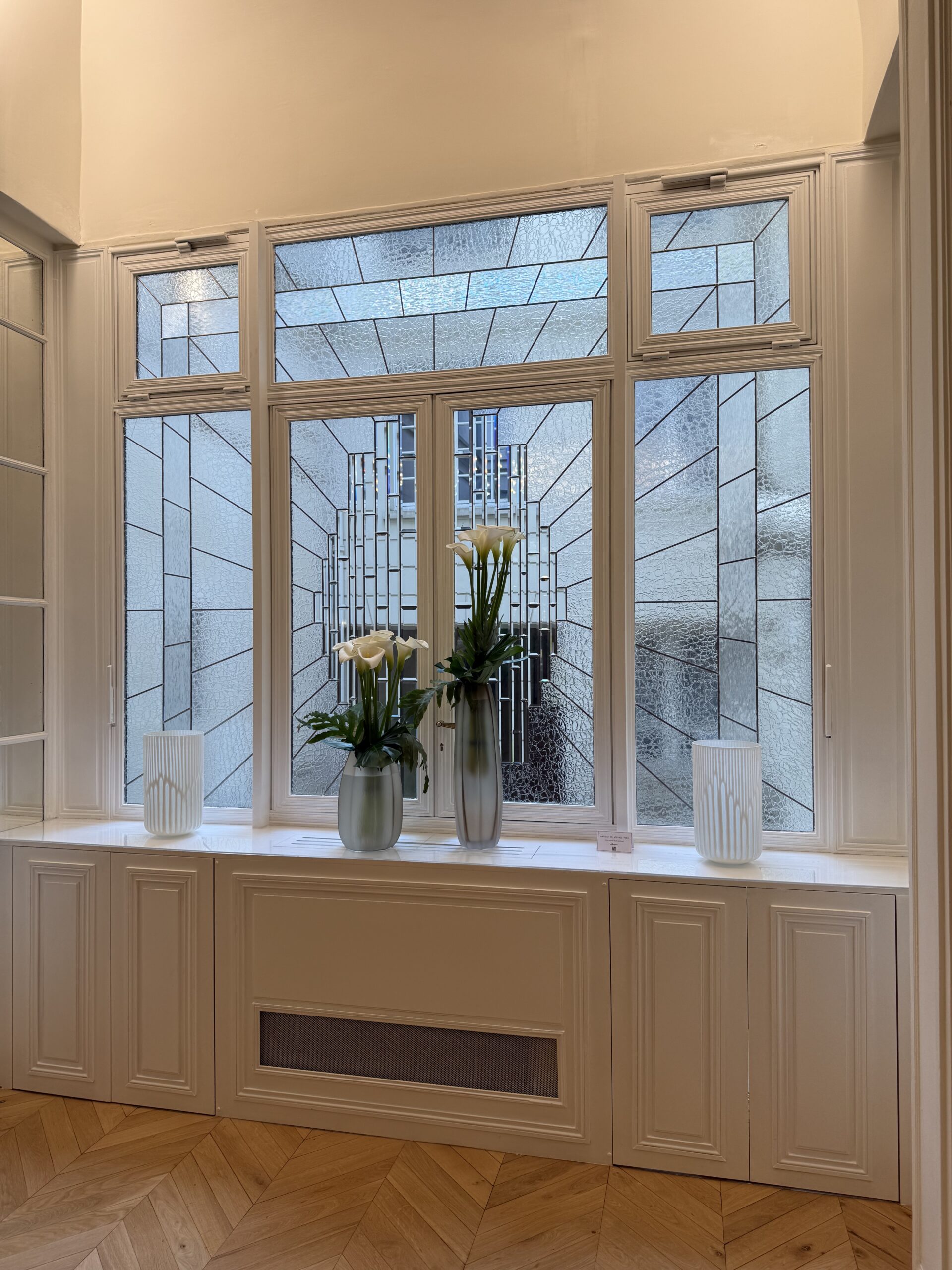 Chaque vitrail est conçu sur mesure, en dialogue avec le lieu, la lumière et les usages.